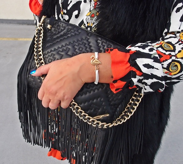 Moi drodzy z racji tego że na chwilkę znikam z życia blogosfery, mam dla Was jeszcze jedna stylizację tym razem na powitanie pięknej i słonecznej jesieni jaka na kilka dni ma się rozgościć w naszym kraju , chociaż ja chętnie bym ją powitała na co najmniej kilka miesięcy. No i na to powitanie polskiej złotej jesieni mam dla Was biżuterię z motywem który był bardzo modny podczas wakacji, a ja myślę, że jest na tyle pozytywny, że i jesień z flamingami może być bardzo ciekawa i inspirująca. W tej stylizacji flamingi wystąpiły w biżuterii marki By ilo . By ilo to polski producent biżuterii i dodatków modowych, a jeśli lubicie spersonalizowaną biżuterię to trafiliście pod dobry adres....setki ciekawych wzorów, dbałość o szczegóły, dobra polska jakość i możliwość wykonania dowolnego graweru to ich główne atuty. Ja do biżuterii z motywem flaminga czyli naszyjnika i bransoletki z grawerem oczywiście Beassima , dobrałam lekka jesienną stylizację, w której o nadchodzącej jesieni przypomina kamizelka z futerka ( oczywiście wykonanego z futra sztucznego) i długich kozaków, a zrównoważyłam ją lekką jeszcze letnią sukienką . Przyznam że to moje ulubione połączenie i tak naprawdę za to kocham ( czasami i z wzajemnością ) jesień właśnie za ten mix jeszcze letnich ubrań z tymi które zdecydowanie przypisane są do pory chłodnej .
